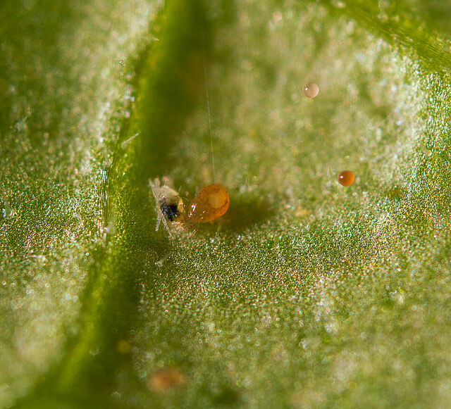 Yırtıcı akar Neoseiulus californicus bir şişe içinde mevcuttur (Spical).