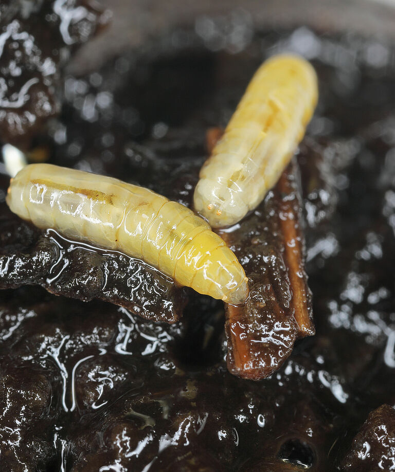 İstila edilmiş meyvelerde küçük bir yumurtlama yarası bulunur. Daha sonra, meyvenin yüzeyi kararır ve alttaki doku da tahrip olarak rengi siyaha döner. Meyve açıldığında larvalar görülebilir; bir meyvede 25’e kadar larva olabilir.
