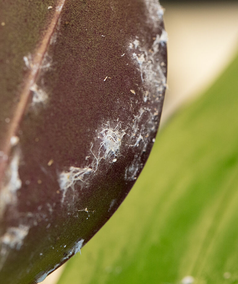 - Nimf ve dişiler bitkinin öz suyunu emerek gelişmeyi engeller ve yapraklarda şekil bozulmasına ve/veya sararmaya, bazen de bunun ardından yaprak dökülmesine neden olur. Bunun toplam etkisi fotosentezin ve dolayısıyla da verimin azalmasıdır. Çiçekler ve meyveler sıklıkla dökülür.