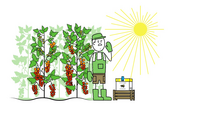 Haftalik metrekarede 25-35 arası yeni çiçek veren yuvarlak, bif (beef) ve büyük salkım domatesleri ile diğer sebze ve meyveler.